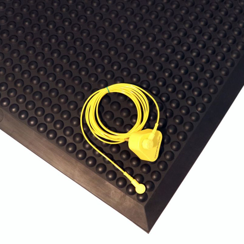 The mat features a unique bubbled surface that promotes subtle movements and reduces fatigue, while the conductive buried layer neutralises static charge and protects sensitive components. Prembubble is grounded via a 10 mm male stud fitted to the mat, and meets or exceeds IEC61340-5-1 resistance requirements.