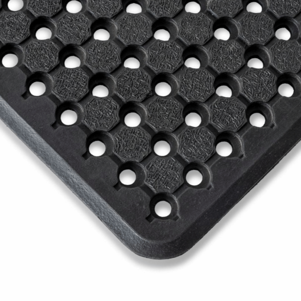 Drainage holes & channels: Designed to quickly drain liquids, keeping floors drier and safer.