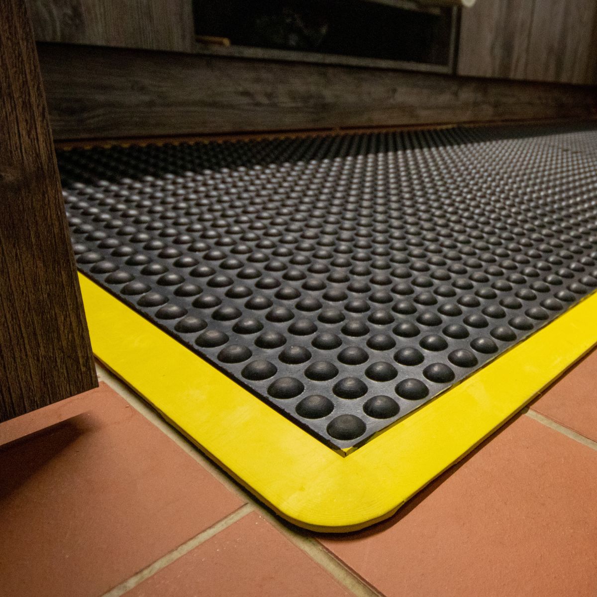 Bubble surface boosts support: Raised bubble design stimulates circulation, enhancing comfort and reducing strain for staff on their feet.