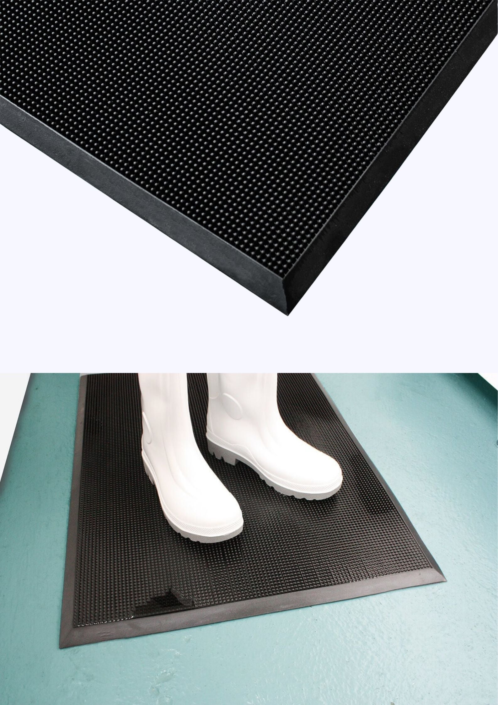 - Raised rubber nibs compress underfoot for improved contact with disinfectant.