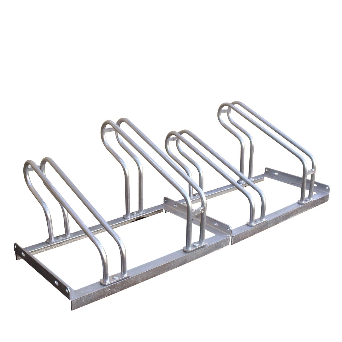 The rack is available in multiple sizes, accommodating between 2 and 6 bicycles.