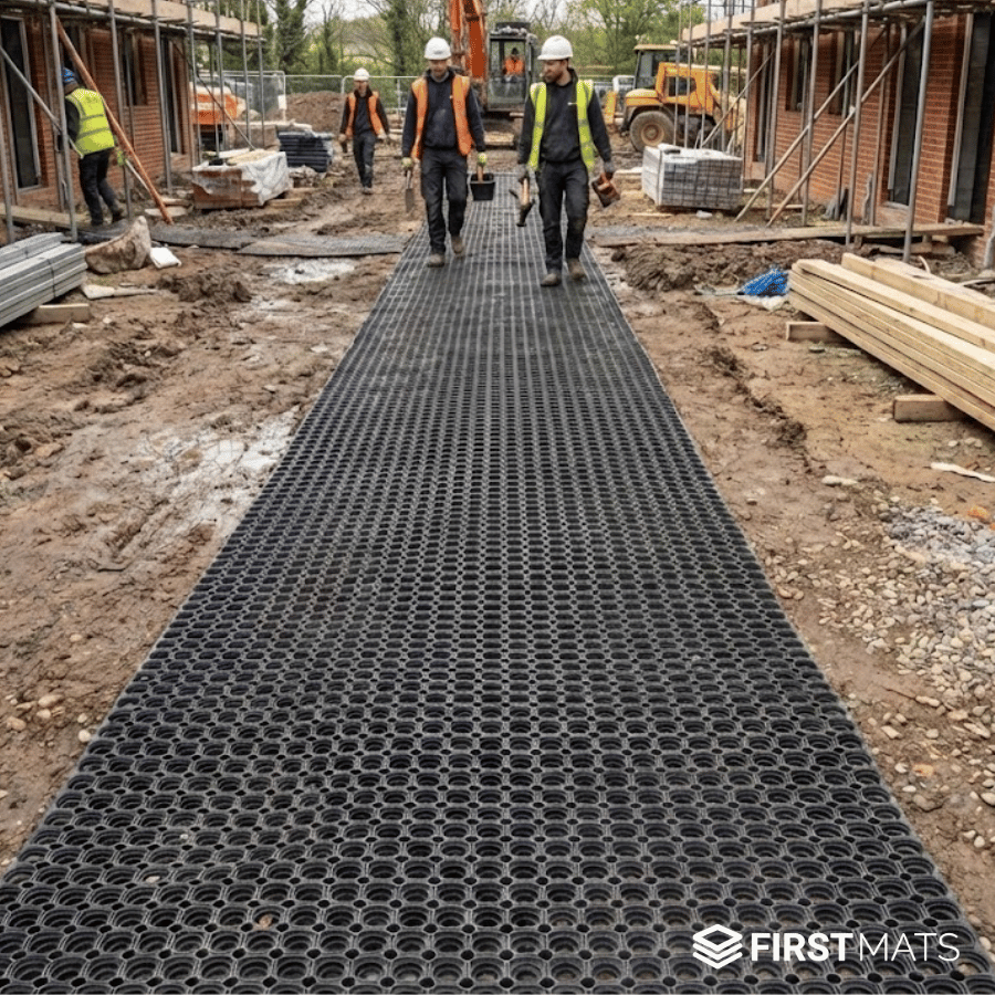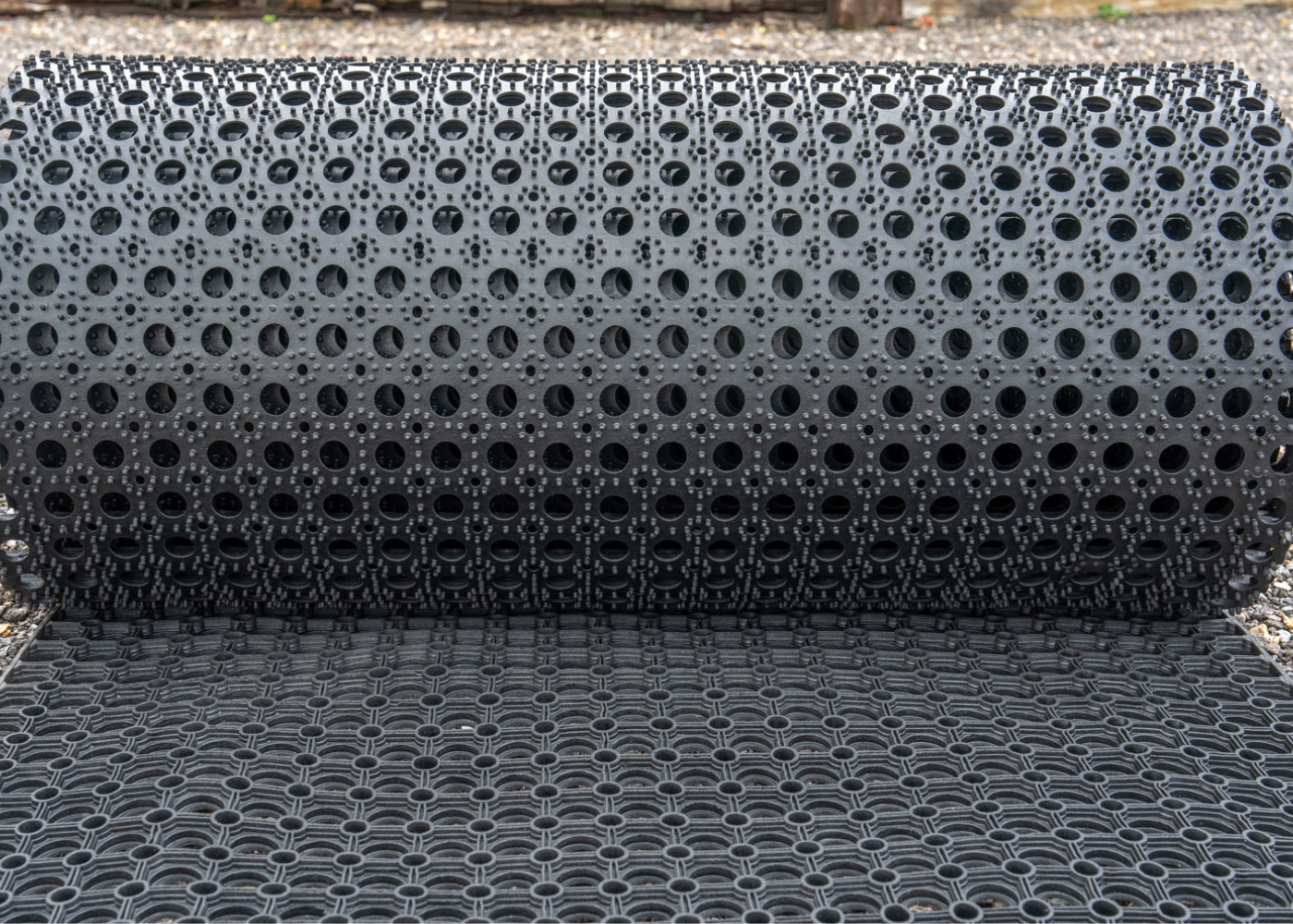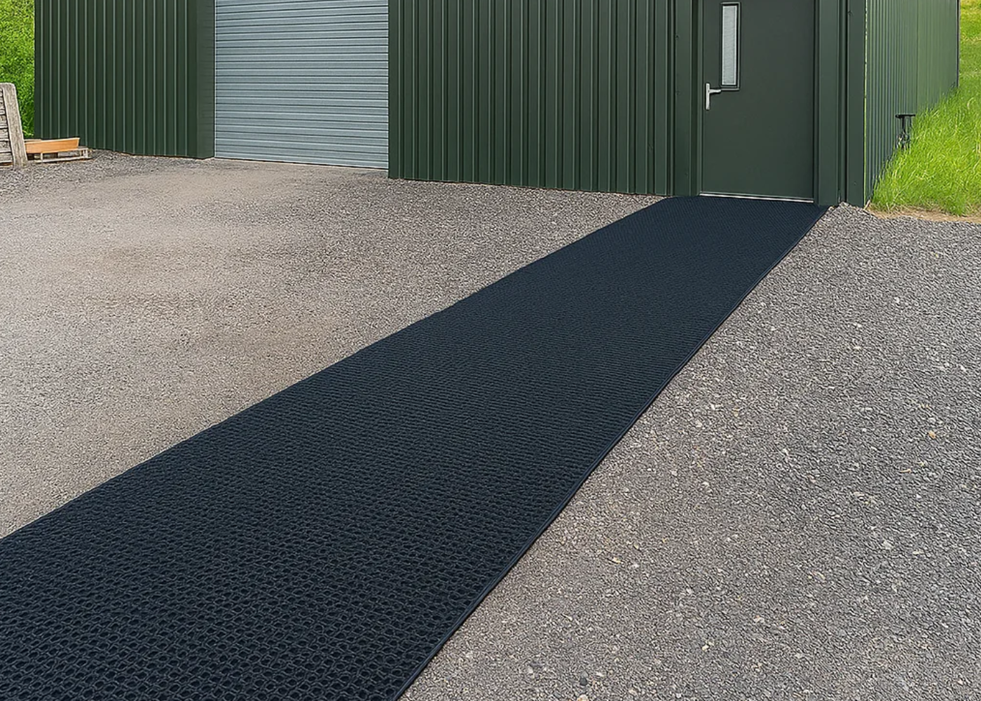 Durable, lightweight, and slip-resistant rubber matting designed to create safer, cleaner walkways across grass, gravel, and uneven ground.