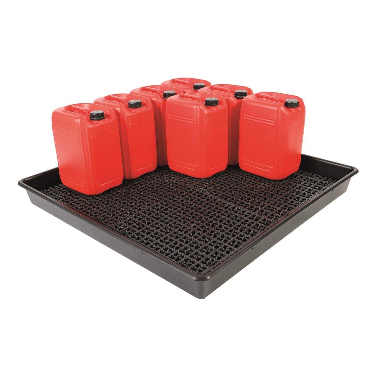 Safeguard your industrial workplace from hazardous leaks and spills with our versatile Spill Trays, an indispensable product for any business handling and storing chemicals, oils, or other dangerous fluids. Simply place up to sixteen 25L drums or smaller containers on our spill trays and let the built-in sump catch any drips or minor leaks.