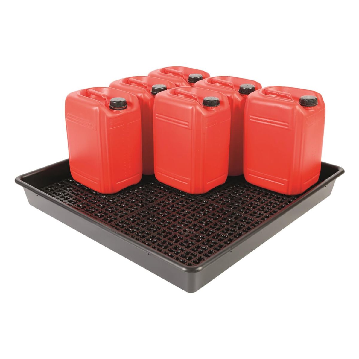 Safeguard your industrial workplace from hazardous leaks and spills with our versatile Spill Trays, an indispensable product for any business handling and storing chemicals, oils, or other dangerous fluids. Simply place up to nine 25L drums or smaller containers on our spill trays and let the built-in sump catch any drips or minor leaks.