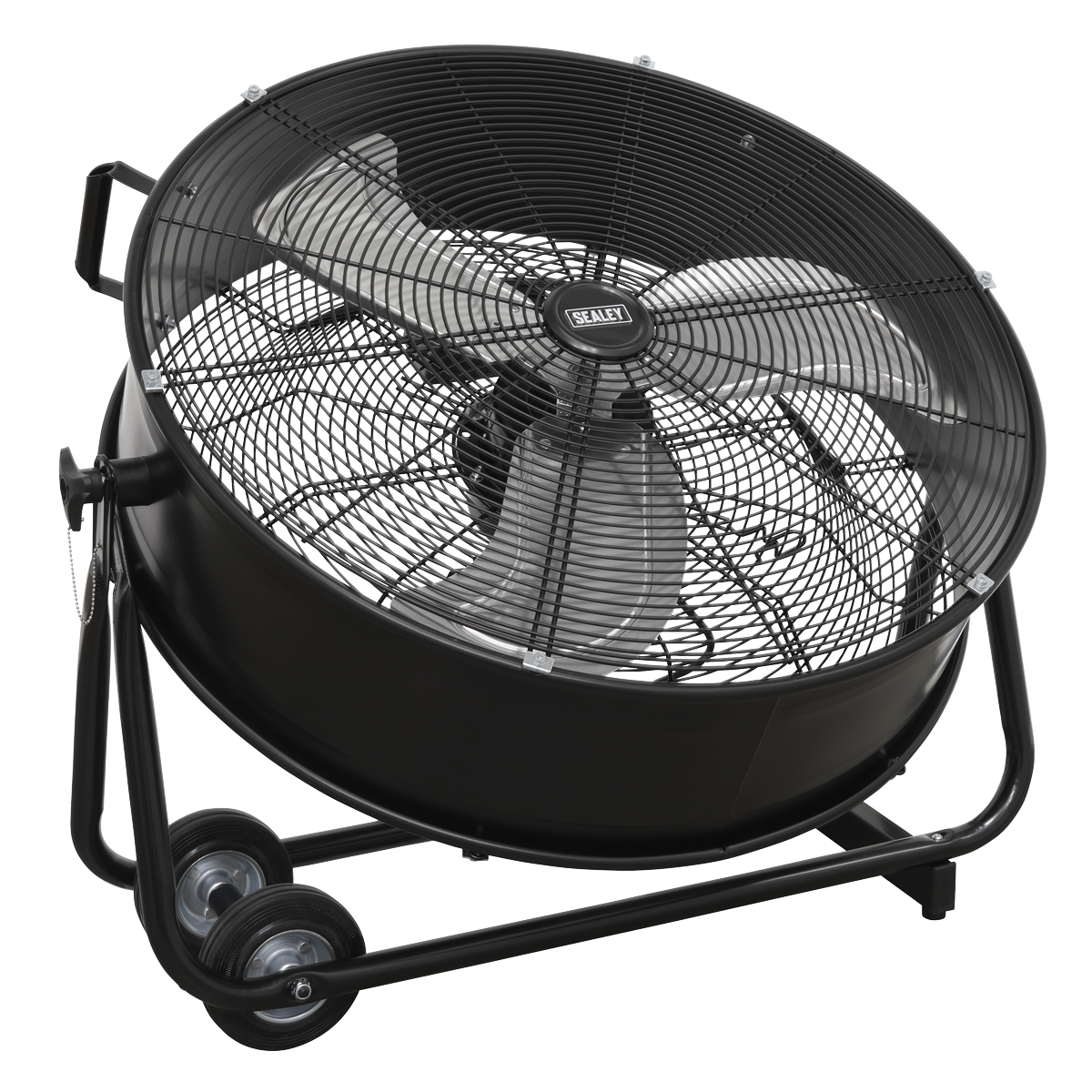 - Effortless Airflow Control: Equipped with a handle, wheels, and a tilt function cradle stand, this 24" drum fan allows for easy airflow control, directing it where it's needed most.