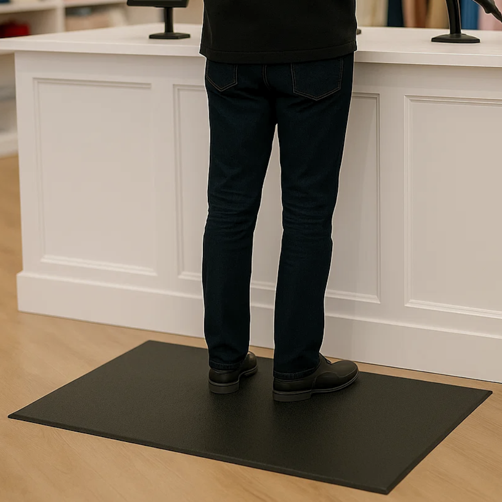 A customisable standing mat that balances comfort, style, and durability for everyday use in shops and receptions.