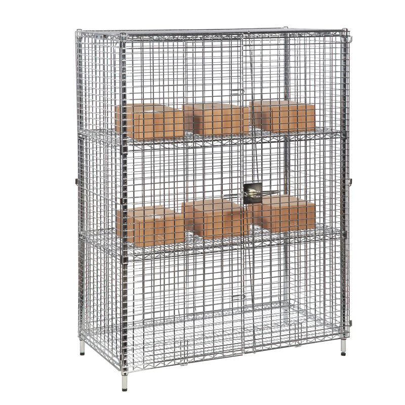 - Static Four-Tier Wire Mesh Cage Lockers: These robust, chrome-finished lockable cages are designed to secure high-value items such as electronics, spirits, and pharmaceuticals, providing peace of mind and enhanced security.