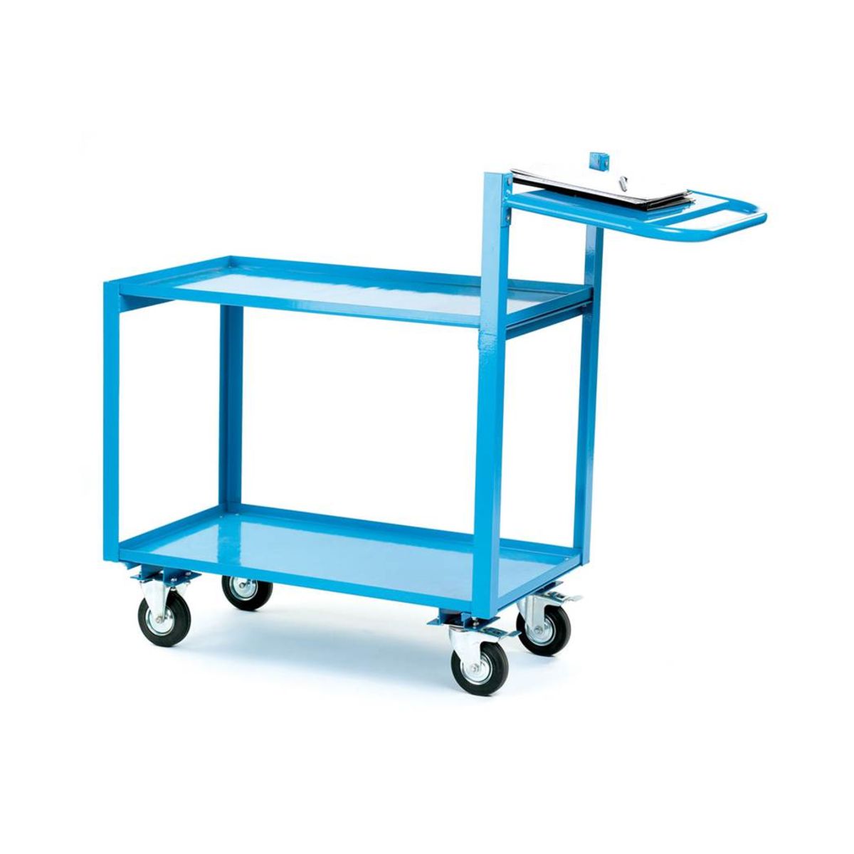 - Fixed blue steel trays provide a sturdy and secure surface for transporting goods.