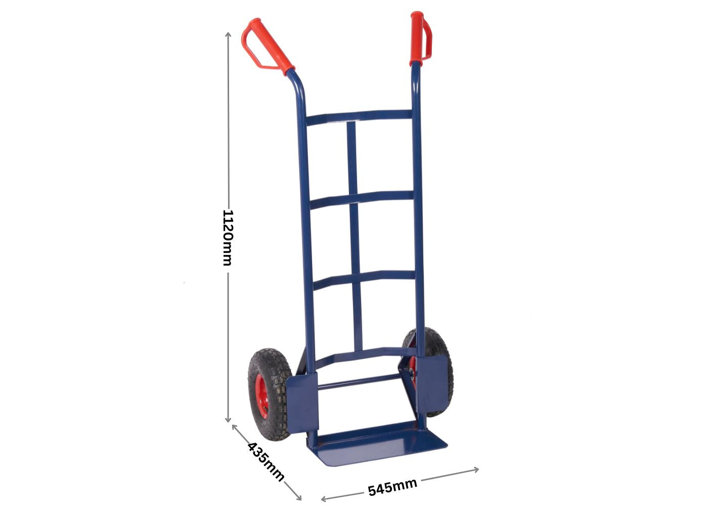 - Dimensions: With a size of 545(W) x 435(D) x 1120(H) mm, this sack truck is compact enough for easy storage and navigation, yet spacious enough to handle large loads.