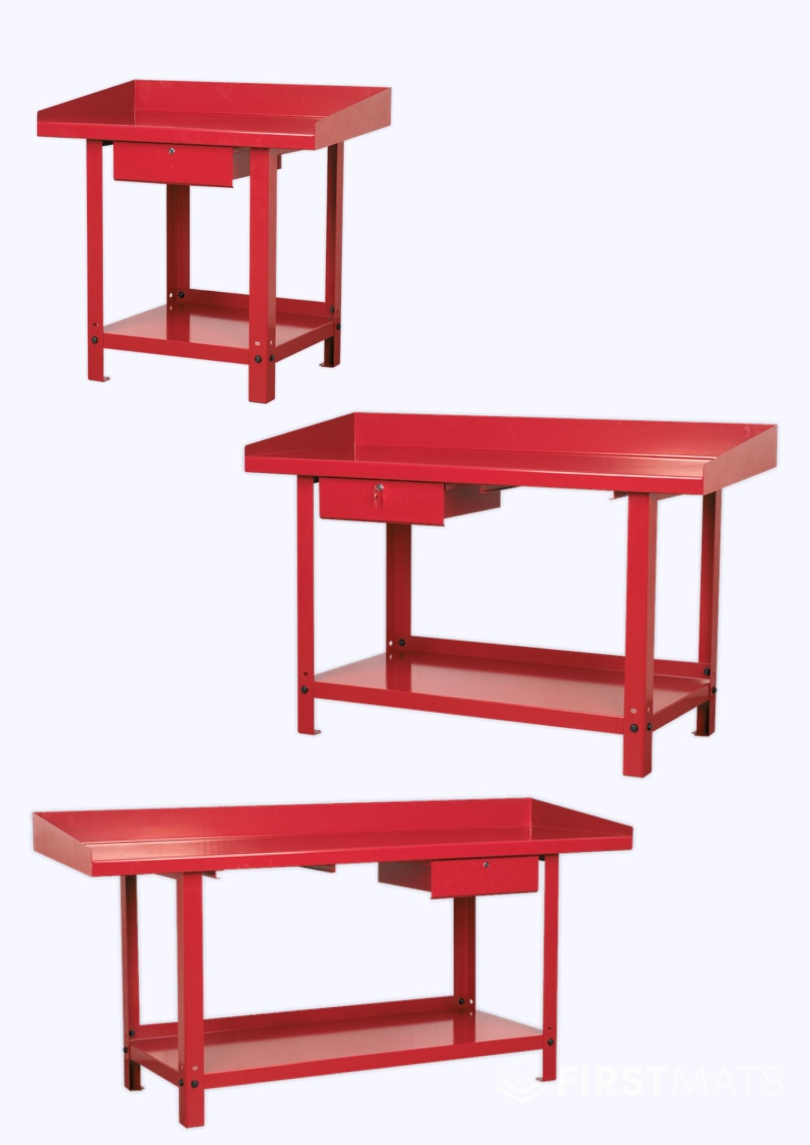 - Lockable Drawer: Each workbench includes a single lockable drawer, providing secure storage for your tools and accessories. The two larger variants feature drawer slides on both sides of the centre for added versatility.