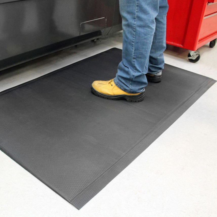 Its soft foam core alleviates strain during prolonged standing, while the PolyNit outer layer protects against oil, grease, and chemical spills. With certified slip and fire resistance, this mat provides compliance and peace of mind in challenging settings, making it an essential choice for industrial areas, workshops, and factories.