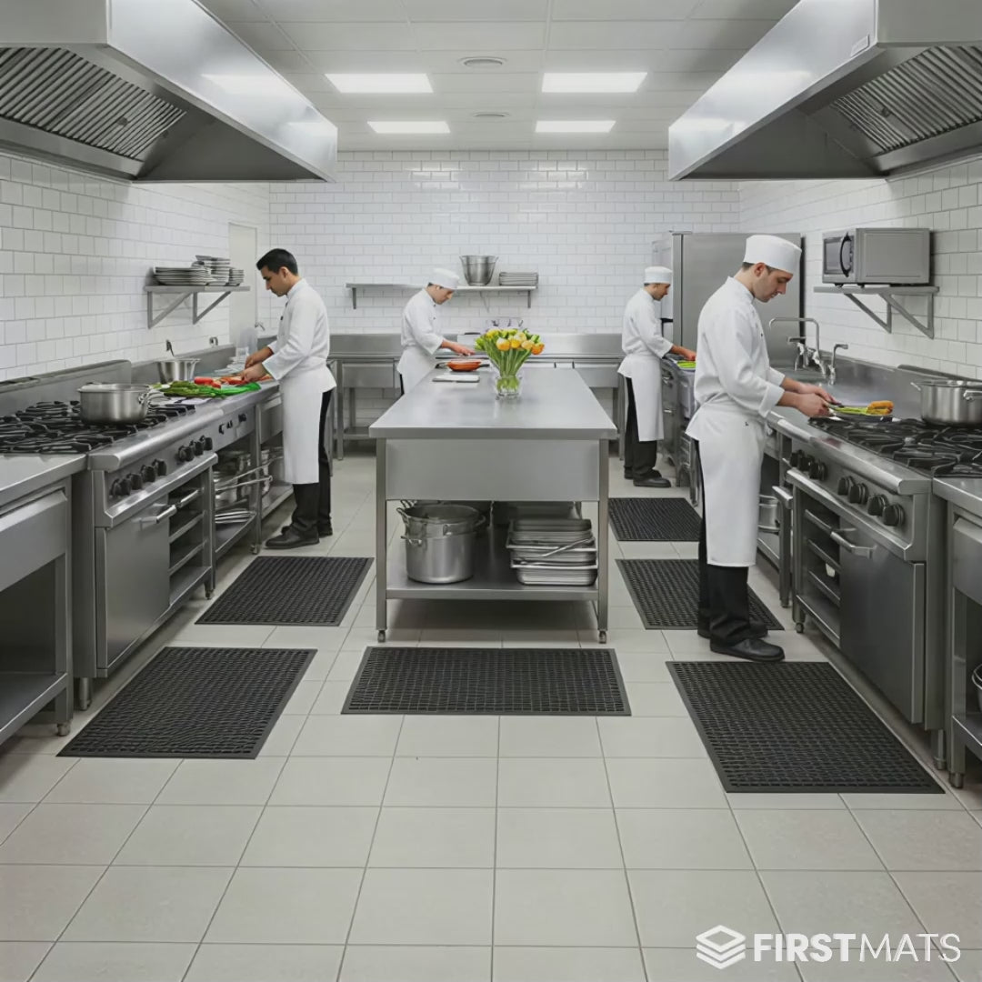 In dry kitchen environments, nothing beats the all-day comfort of the Ultra-Comfort Kitchen Anti-Fatigue Mat. Its soft PU cushioning reduces strain on joints and muscles, while the bubble-pattern surface stimulates movement and circulation to combat fatigue. Light, durable, and heat-resistant, it’s the ideal mat for chefs and catering staff who need superior comfort without compromising on hygiene or safety.