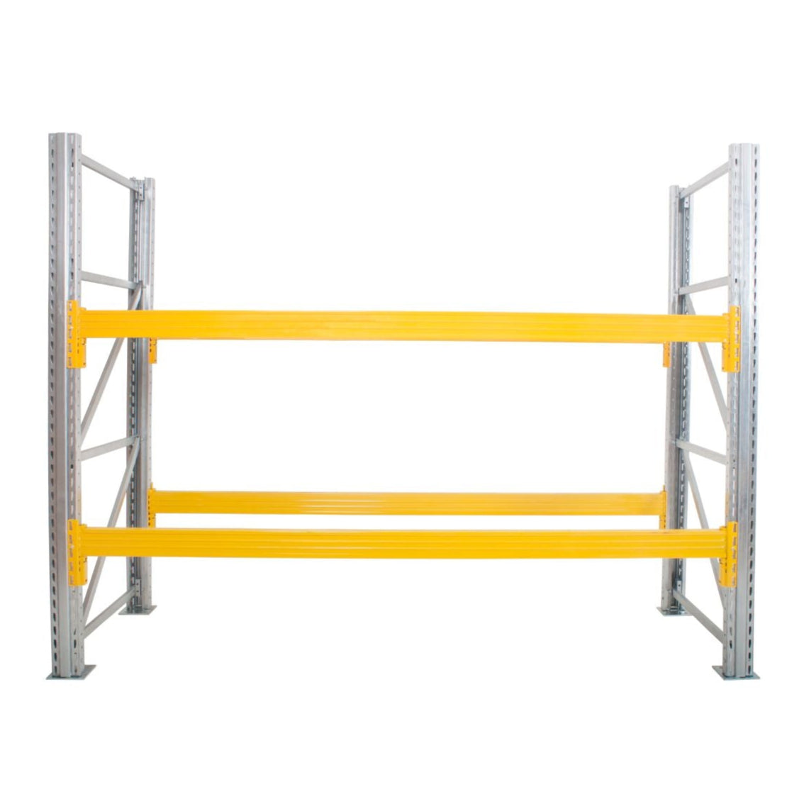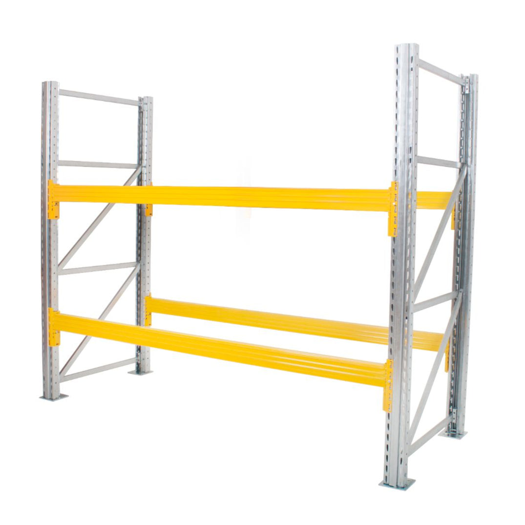 Constructed with galvanised steel frames for durability and yellow painted beams for added visibility and strength, this racking system is made to withstand demanding warehouse environments. Supplied with locking pins, levelling shims, and floor fixings, it delivers both stability and safety, giving you a reliable pallet racking system that helps keep your warehouse organised and efficient.