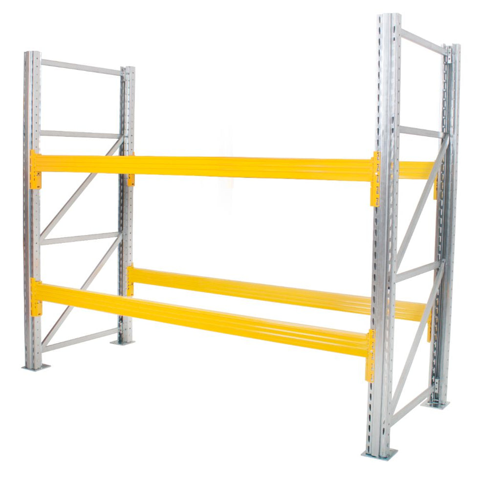 Manufactured with galvanised steel uprights and yellow painted beams, this pallet racking system combines strength, durability, and visibility for long-term use in busy environments. Available in 3000mm or 4000mm heights, it provides storage for 18 Euro pallets across two levels, giving you reliable capacity and helping to keep your warehouse organised and efficient.