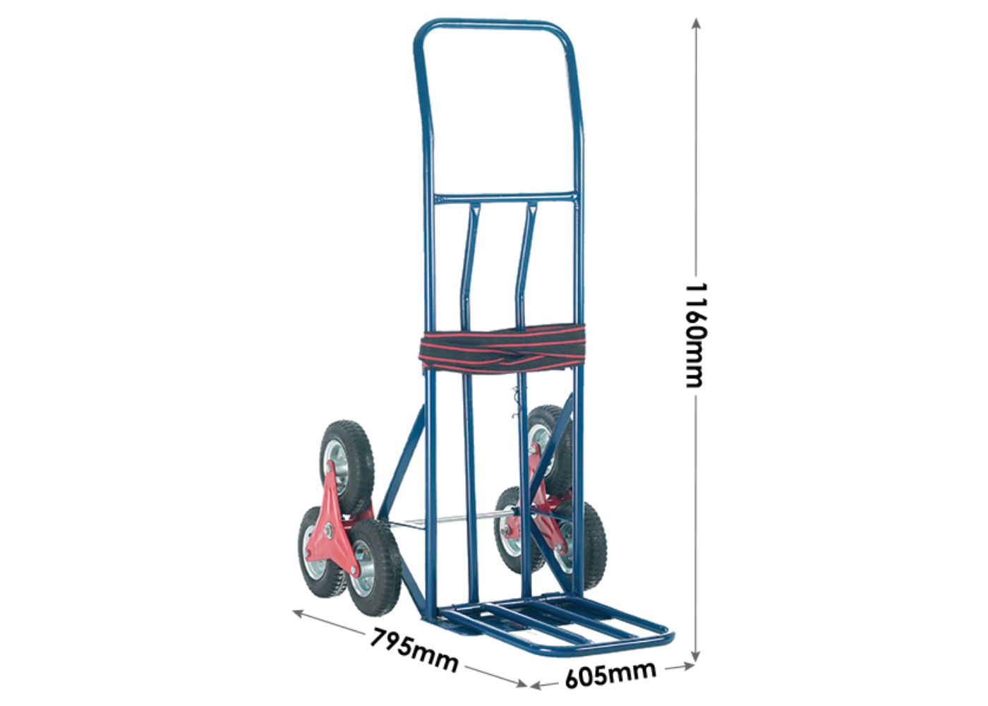 - Dimensions: With dimensions of 605mm (W) x 795mm (D) x 1160mm (H), a fixed toe plate of 410mm (W) x 200mm (D), and wheel size of 3x 160mm, this sack truck is designed for practicality and ease of use.